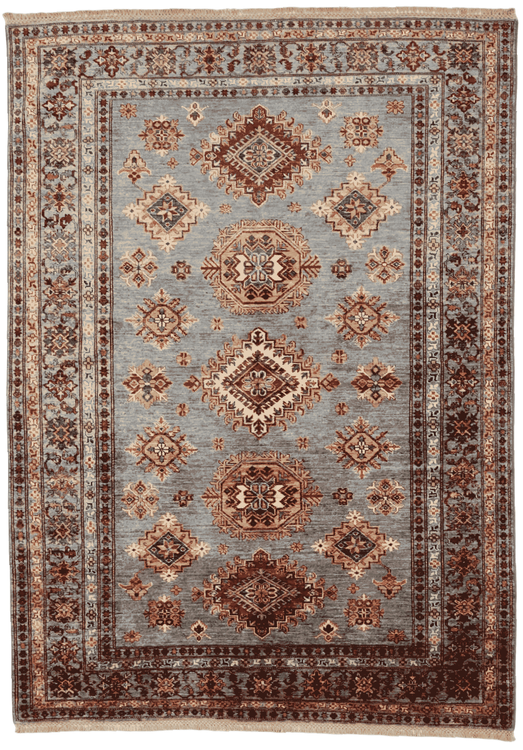 Les tapis Kazak sont originaires des régions caucasiennes, en particulier de l'Arménie, de l'Azerbaïdjan et de la Géorgie. Nos tapis Kazak proviennent d'Afghanistan, et plus particulièrement de la région de Ghazni, et sont principalement fabriqués à partir de laine de mouton de qualité supérieure provenant des régions montagneuses. La laine est soigneusement filée et teinte, en utilisant souvent des colorants naturels.