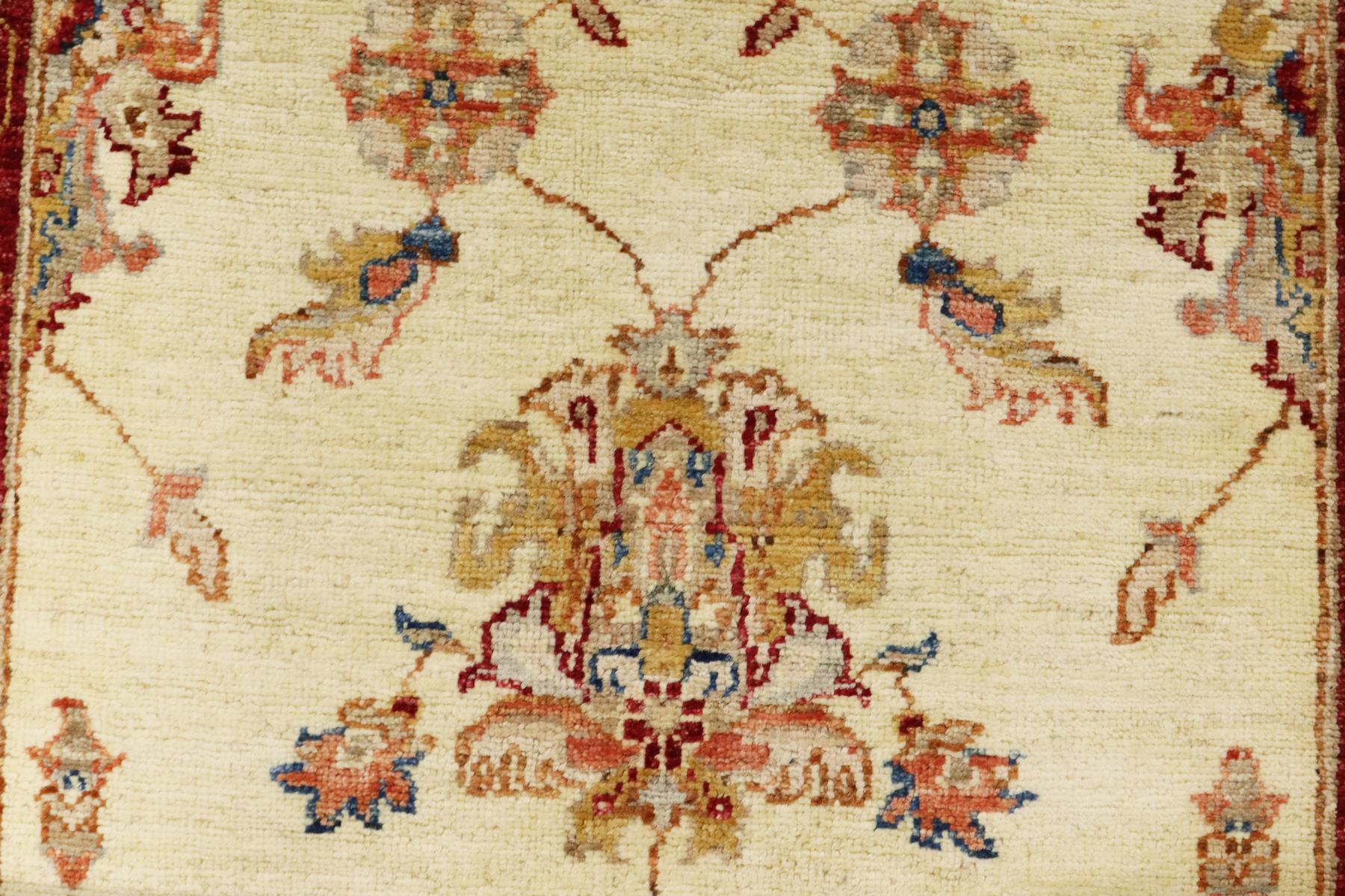 Ce tapis est fabriqué sur des métiers à tisser par des artisans expérimentés, chaque nœud étant noué séparément. La production de tapis Ziegler s'étend sur plusieurs régions, dont Lahore, Karachi, Peshawar et d'autres villes réputées pour leur production de tapis. Le Pakistan possède une riche tradition dans la production de tapis et jouit d'une reconnaissance mondiale pour la qualité et la beauté de ses tapis faits main. Le prix et la durabilité d'un tapis sont largement influencés par la qualité des matériaux utilisés. Le nouage d'un tapis d'Orient fait main est un art exigeant et long qui a été perfectionné par des générations de noueurs de tapis.