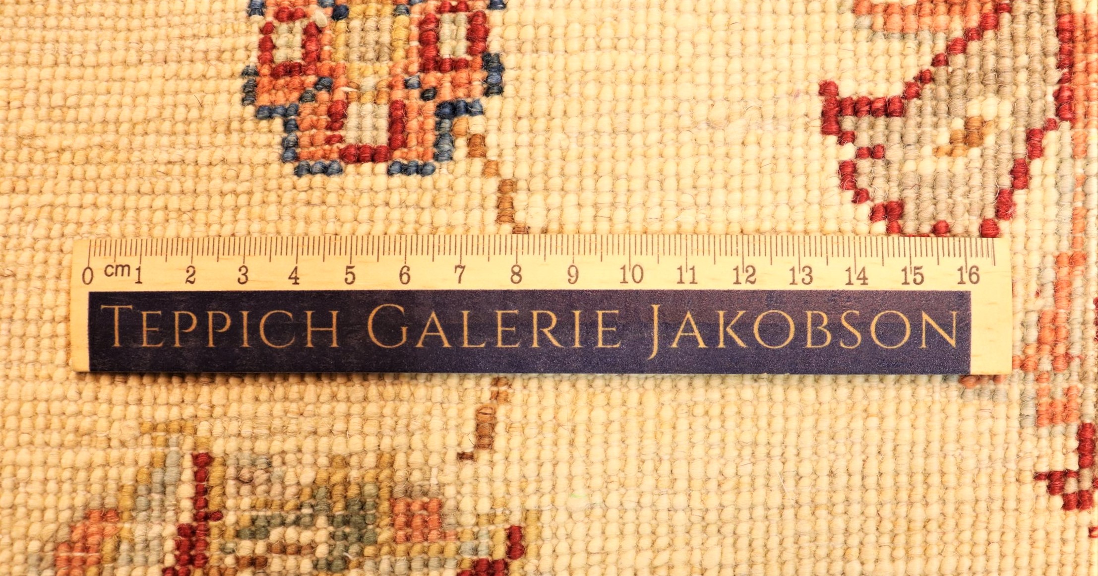 Zu den begehrten Klassikern unter den traditionellen Orientteppichen zählt dieser Farahan-Teppich. Unsere Farahan-Teppiche, auch unter dem Namen Ziegler bekannt, entstehen durch sorgfältige Handarbeit in Afghanistan und Pakistan. Die Schafwolle, mit ihrem natürlichen Fettgehalt, bietet einen zusätzlichen Schutz vor den alltäglichen Belastungen. Dieser Teppich vereint die Eleganz klassischer Perserteppiche mit modernen Designelementen, um eine zeitgemäße Ästhetik zu präsentieren. Durch seinen Vintage-Charme strahlt dieser Teppich eine gelassene Ruhe aus und verleiht jedem Raum eine belebende Atmosphäre.