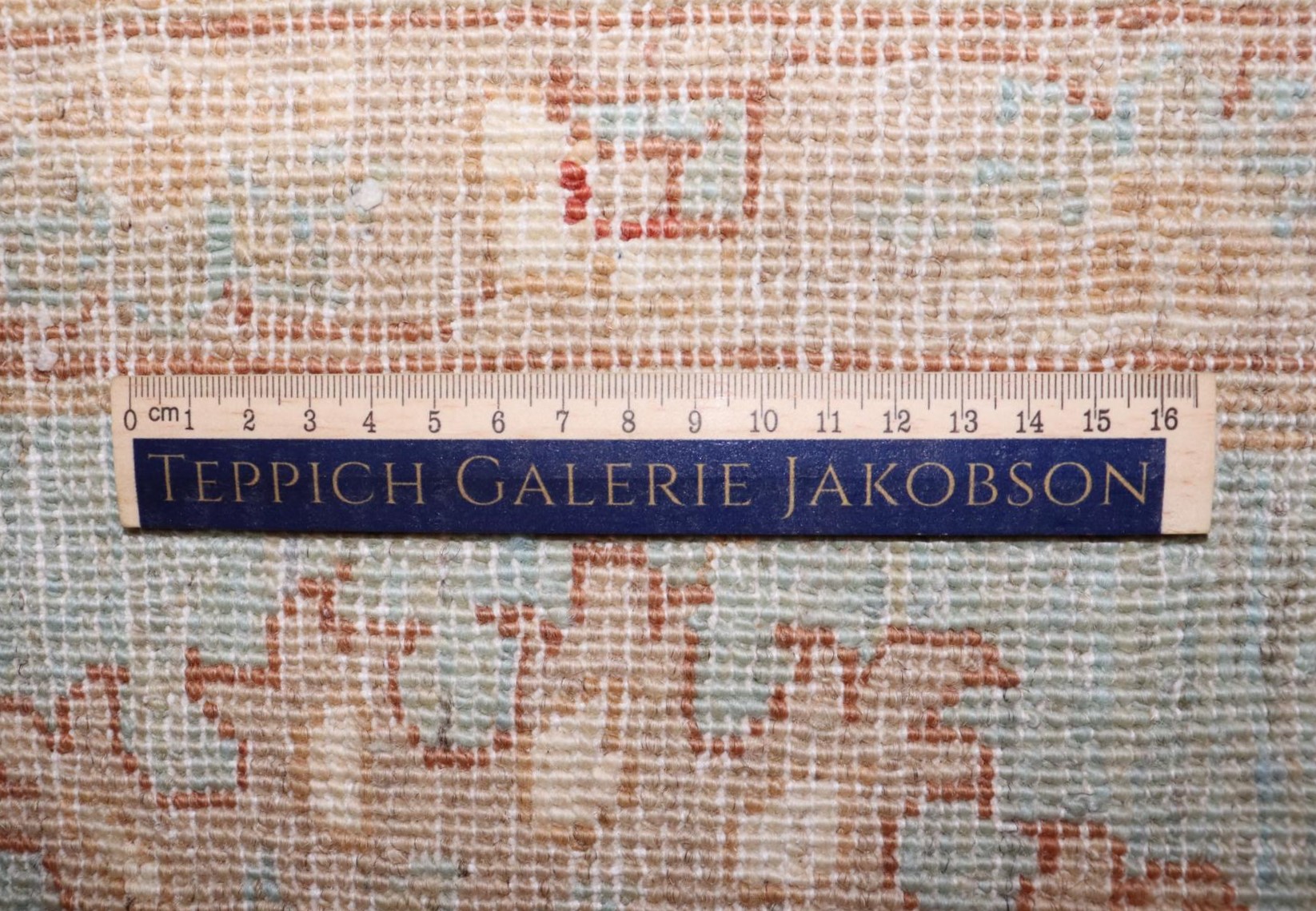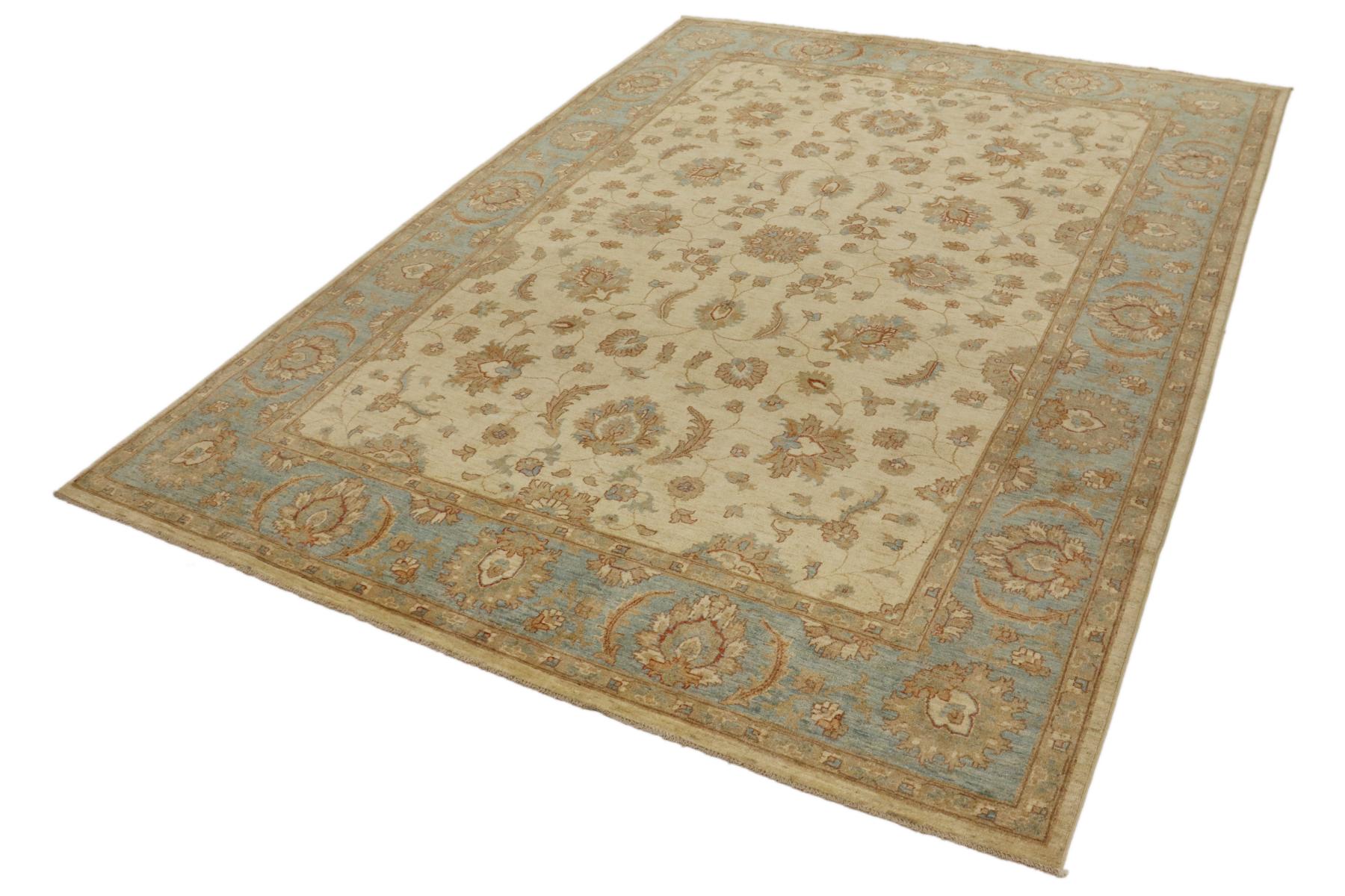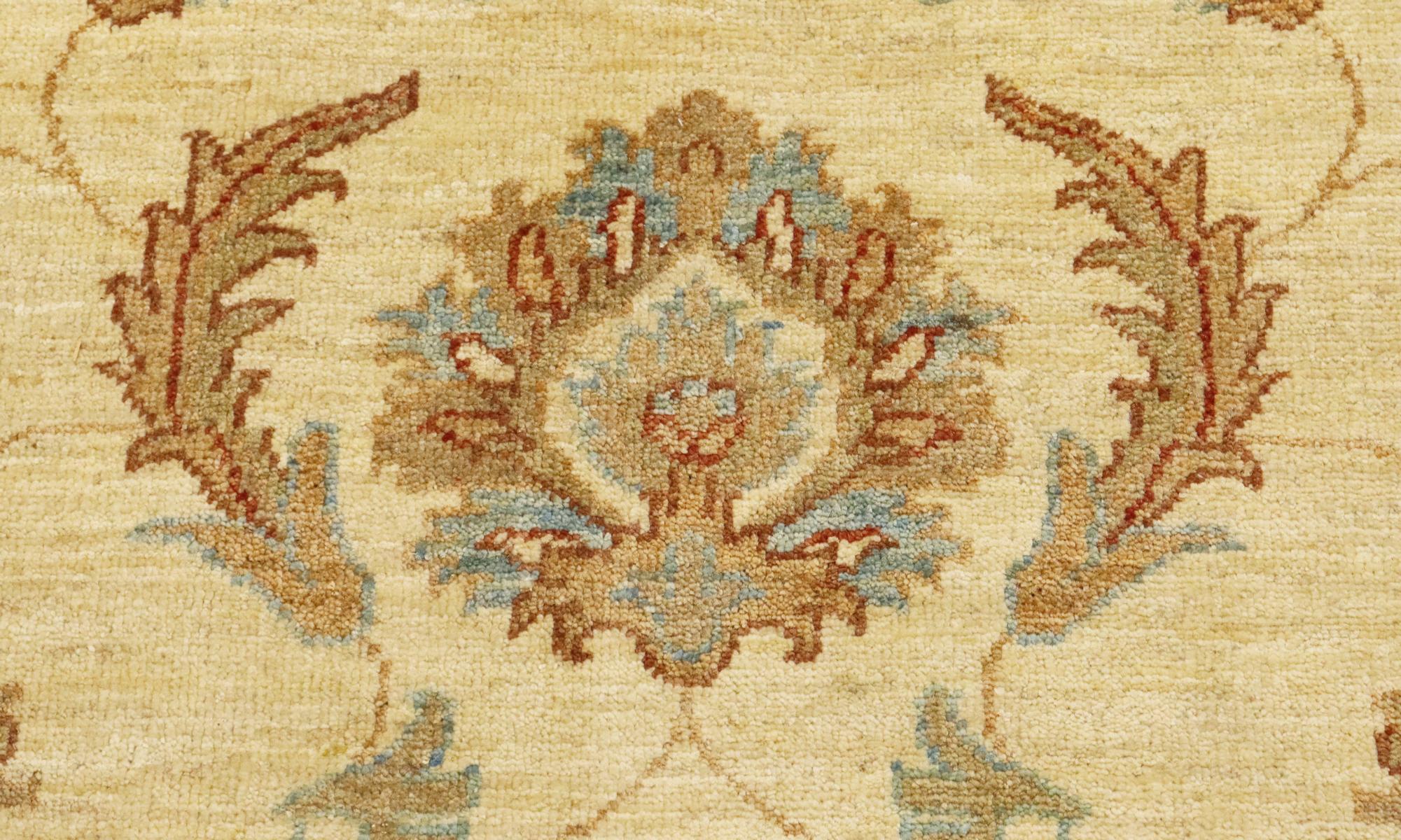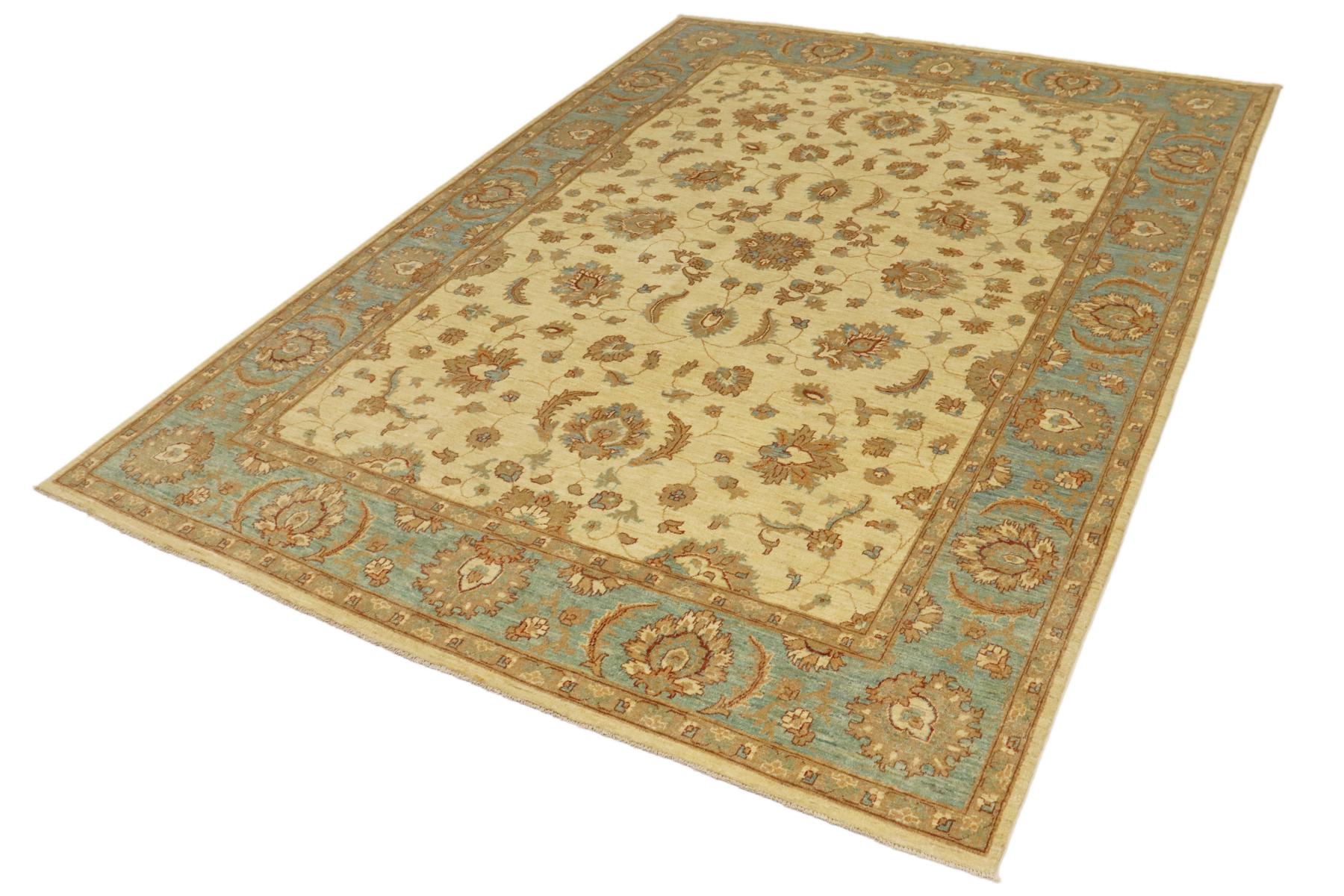 Ce tapis est fabriqué sur des métiers à tisser par des artisans expérimentés, chaque nœud étant noué séparément. La production de tapis Ziegler s'étend sur plusieurs régions, dont Lahore, Karachi, Peshawar et d'autres villes réputées pour leur production de tapis. Le Pakistan possède une riche tradition dans la production de tapis et jouit d'une reconnaissance mondiale pour la qualité et la beauté de ses tapis faits main. Le prix et la durabilité d'un tapis sont largement influencés par la qualité des matériaux utilisés. Le nouage d'un tapis d'Orient fait main est un art exigeant et long qui a été perfectionné par des générations de noueurs de tapis.