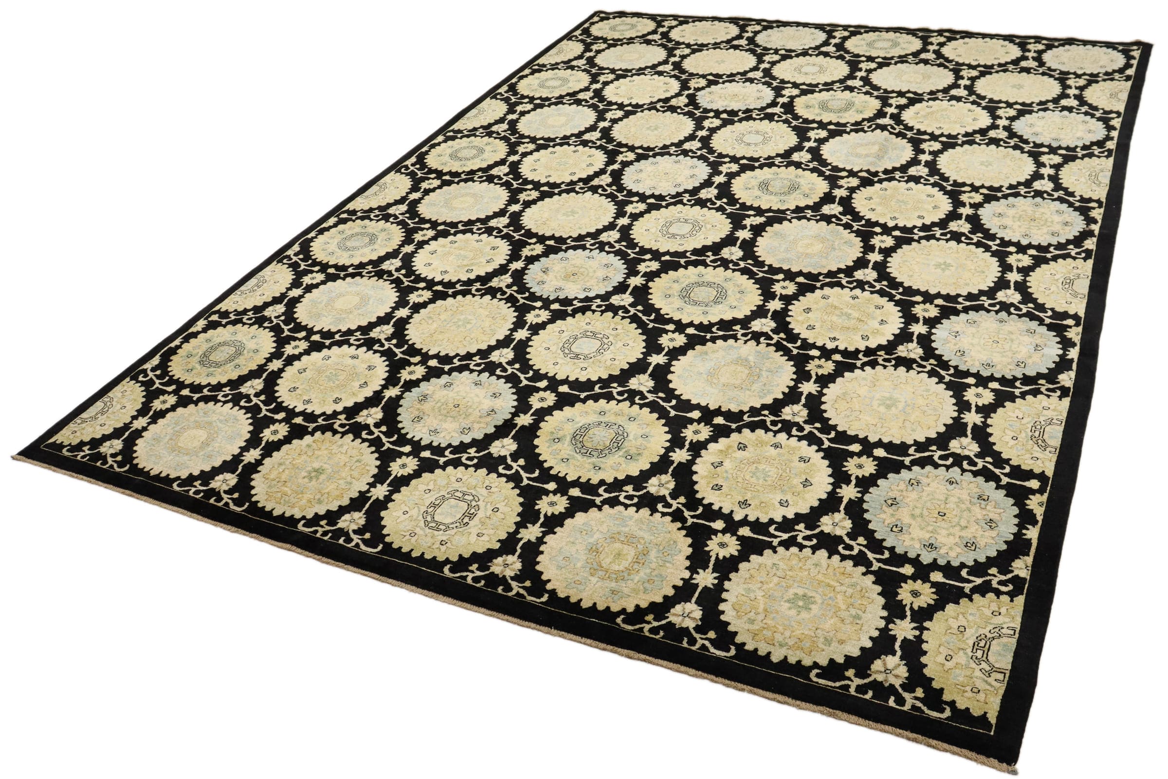 Ce tapis est fabriqué sur des métiers à tisser par des artisans expérimentés, chaque nœud étant noué séparément. La production de tapis Ziegler s'étend sur plusieurs régions, dont Lahore, Karachi, Peshawar et d'autres villes réputées pour leur production de tapis. Le Pakistan possède une riche tradition dans la production de tapis et jouit d'une reconnaissance mondiale pour la qualité et la beauté de ses tapis faits main. Le prix et la durabilité d'un tapis sont largement influencés par la qualité des matériaux utilisés. Le nouage d'un tapis d'Orient fait main est un art exigeant et long qui a été perfectionné par des générations de noueurs de tapis.